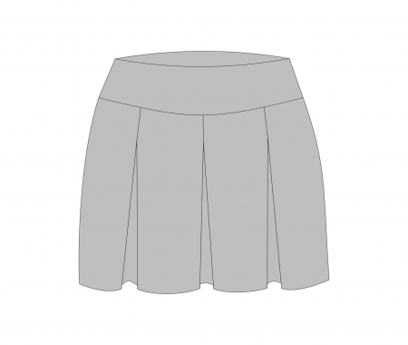 Descritivo; Saia com bolsos e pregas enviezadas na cintura