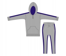 Descritivo; Conj moletom canguru, com calça saruel e faixas em segunda cor nas mangas e calça