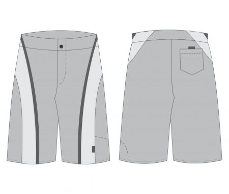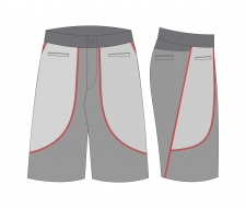 Descritivo; Bermuda com saia sobreposta, saia levemente godê com recorte frente