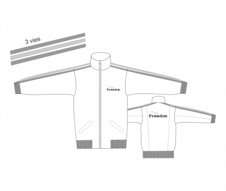 Variação: Jaqueta masculina e feminina, sendo a feminina mais ajustada seguindo a modelagem feminina