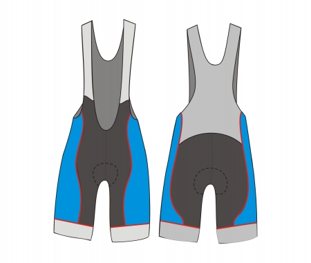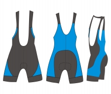 Descritivo; Macaquinho bretelle para ciclismo, com recortes laterais em duas cores, reforço almofada acolchoada. Corpo em segunda cor costas nadador.