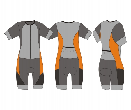 Descritivo; Macaquinho ciclismo, recortes laterais em 4 cores, fechamento com ziper
