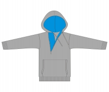 Descritivo; Moletom abertura frente deslocada com limpeza em segunda cor e big bolso canguru