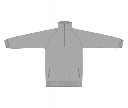 Descritivo; Moletom manga longa raglã, gola alta, com abertura zíper até o peito e bolsos com zíper chapados internos