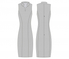 Vestido tubo recorte princesa sem manga e decote aberto em V